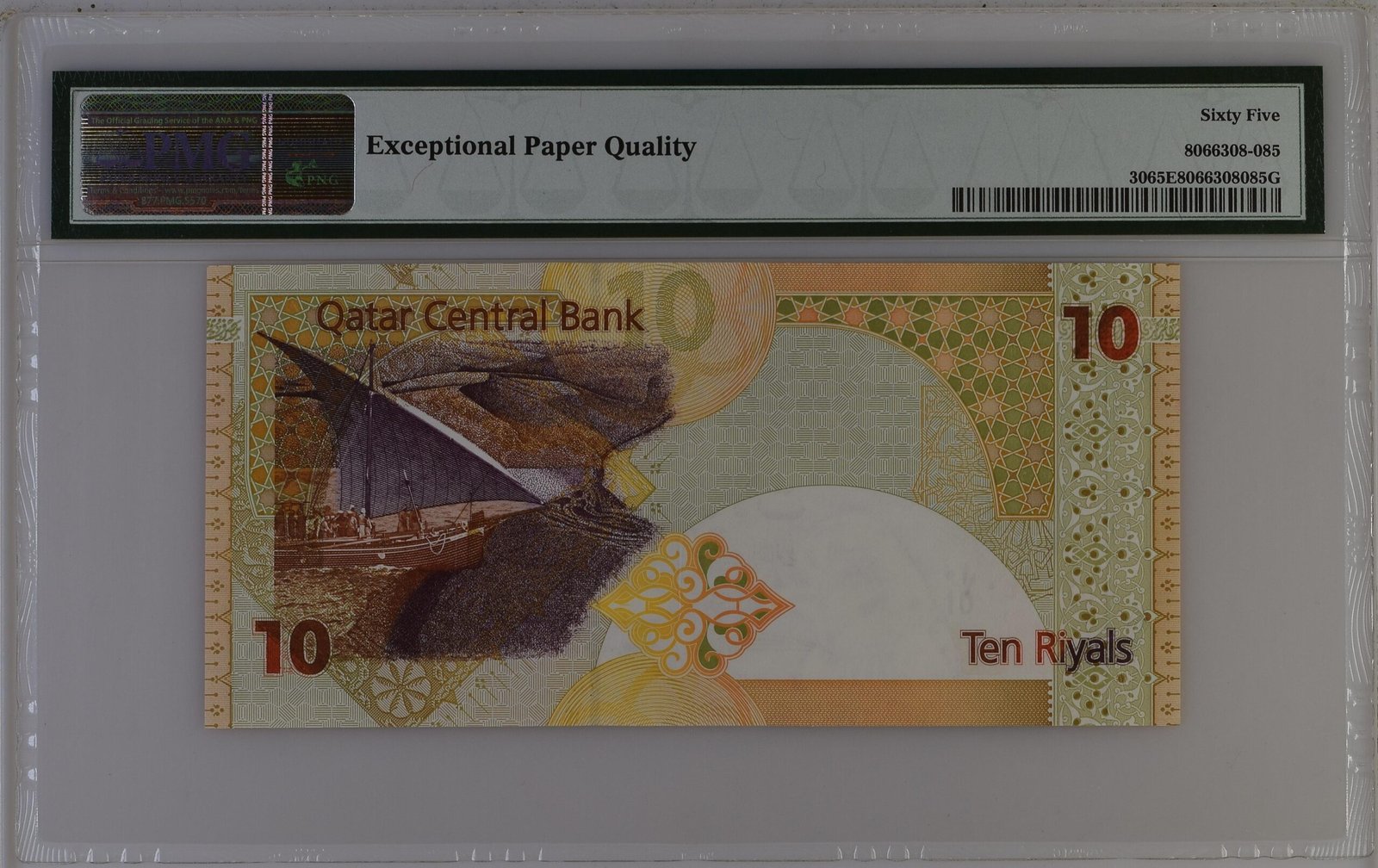 قطر، البنك المركزي، 10 ريالات بدون تاريخ (2008) – مع علامات ملموسة