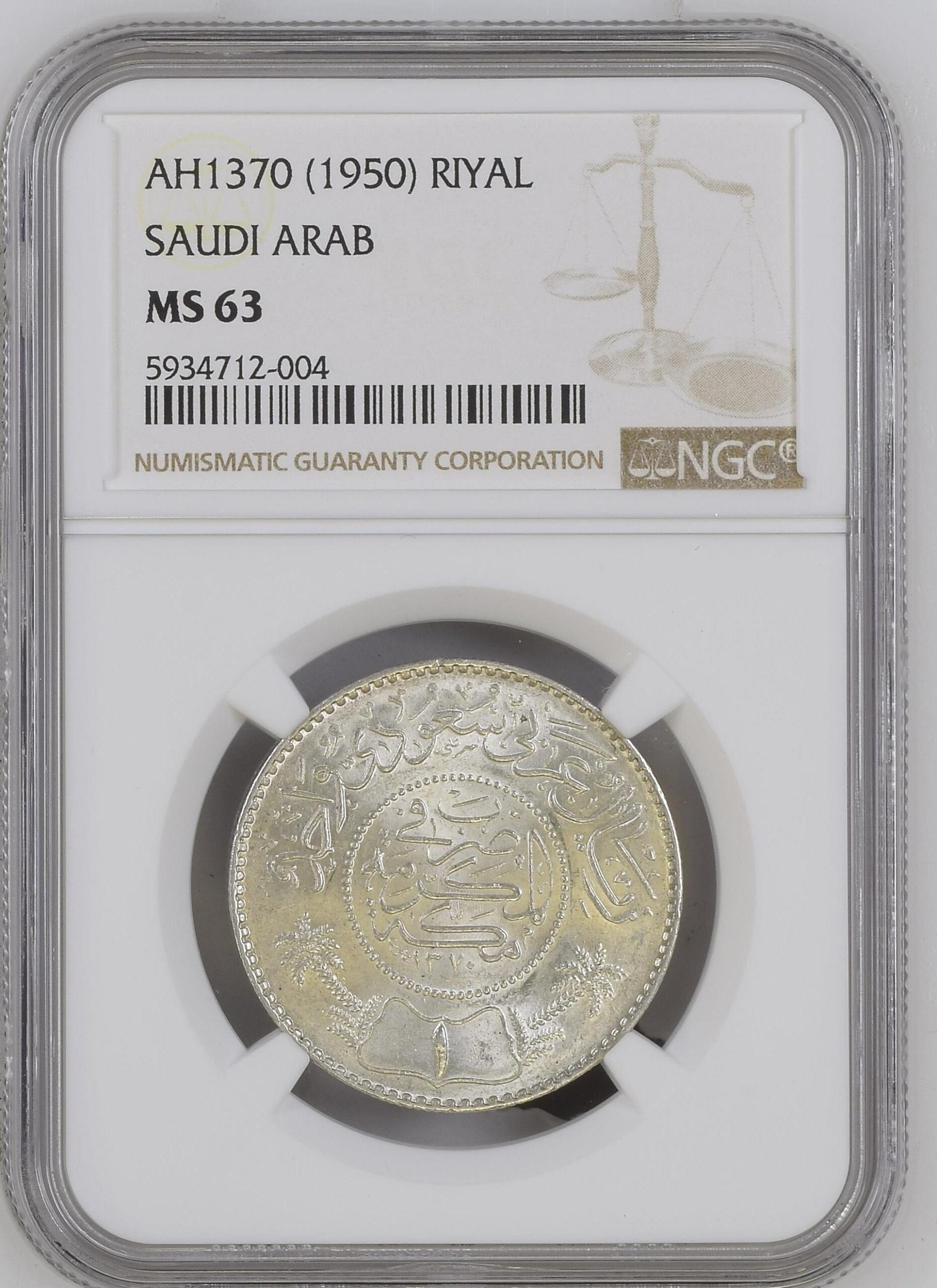 - Description AH1370(1950) SAUDI ARAB RIYAL