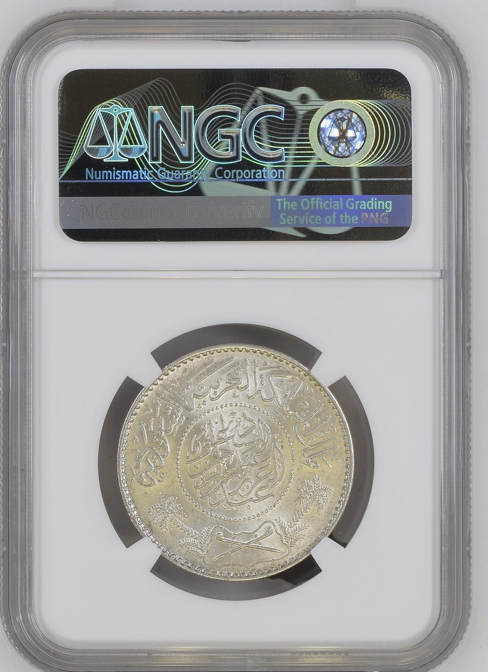 This silver 1 Riyal coin was issued in AH 1370 (1950 AD) during the reign of King Abdulaziz Al Saud. It is one of the earliest silver riyals to officially bear the name “Kingdom of Saudi Arabia” following the unification of the country.