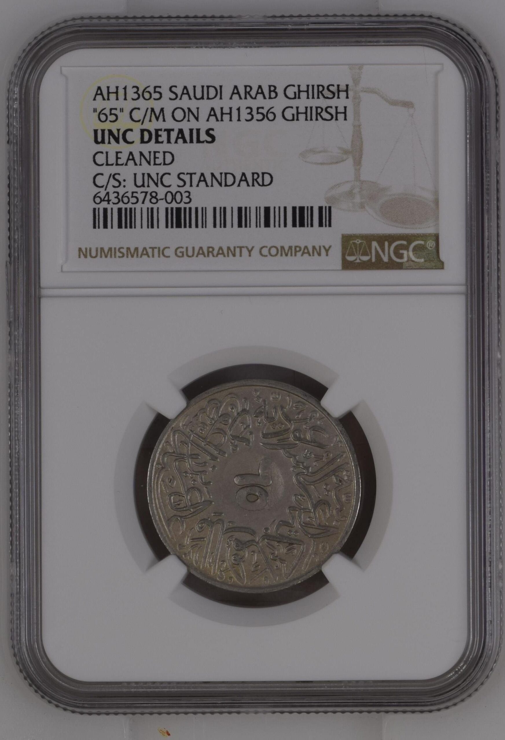 - Description AH1365(1946) SAUDI ARAB “65” C/S ON AH1356 GHIRSH GHIRSH