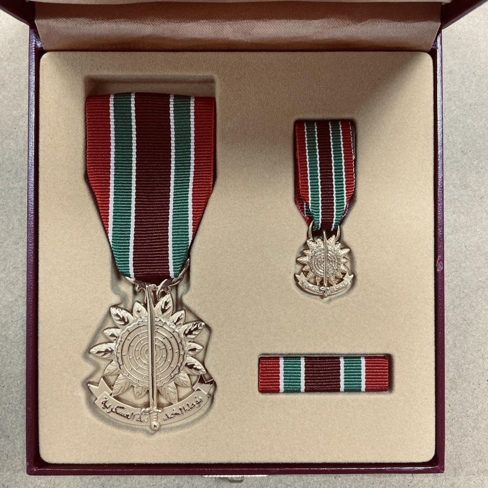 The Saudi Arabia Military Service Medal from the 20th century is a prestigious award given to members of the Saudi Arabian military in recognition of their dedicated service and valor. This medal is made of bronze with dimensions of 52×43 mm and comes with an original ribbon, a bar, a miniature version, and is presented in its original box in excellent condition. Historically, Saudi Arabia has a rich military tradition dating back centuries. The modern Saudi Arabian military was officially established in the early 20th century and has since played a significant role in regional and international conflicts. The Military Service Medal serves as a symbol of honor and pride for those who have served their country with distinction. Receiving this medal is a testament to the recipient’s commitment to serving and protecting Saudi Arabia, making it a cherished keepsake for those who have dedicated their lives to the defense of their nation.