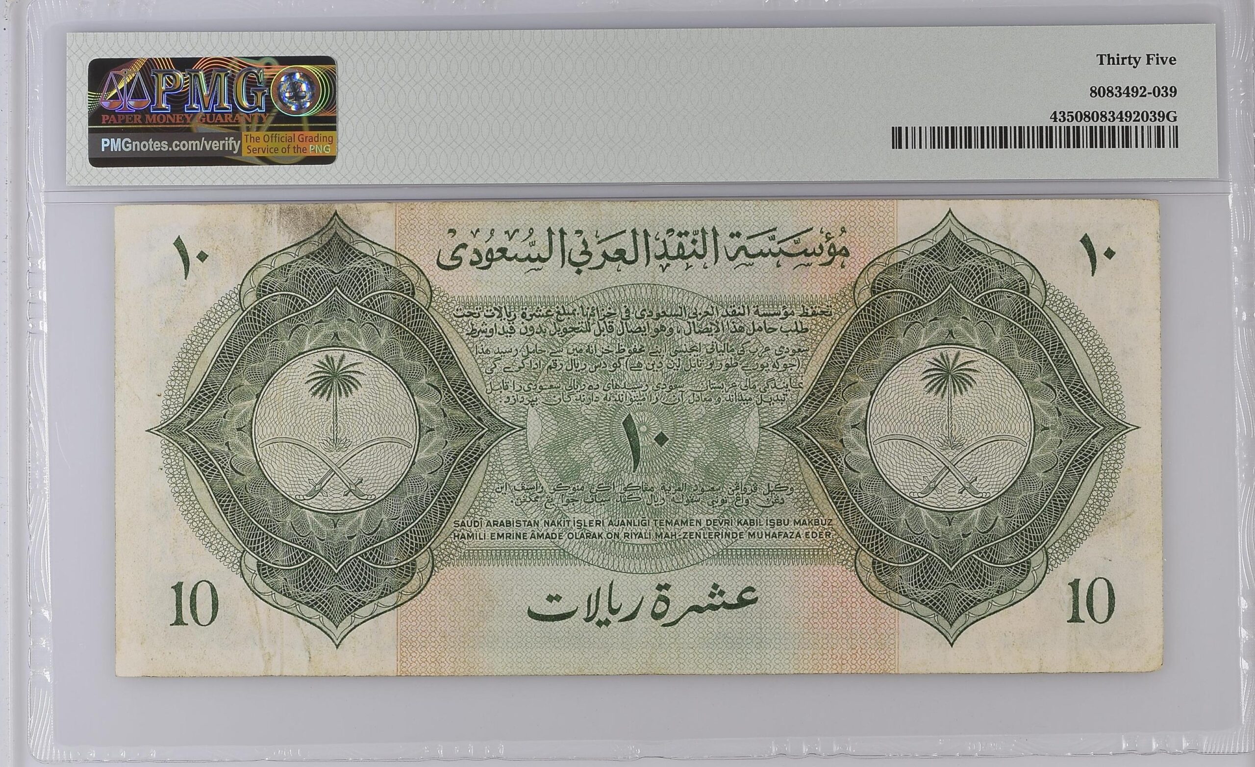 Note Description: Saudi Arabia, Monetary Agency, 10 Riyals (1954) / AH1373