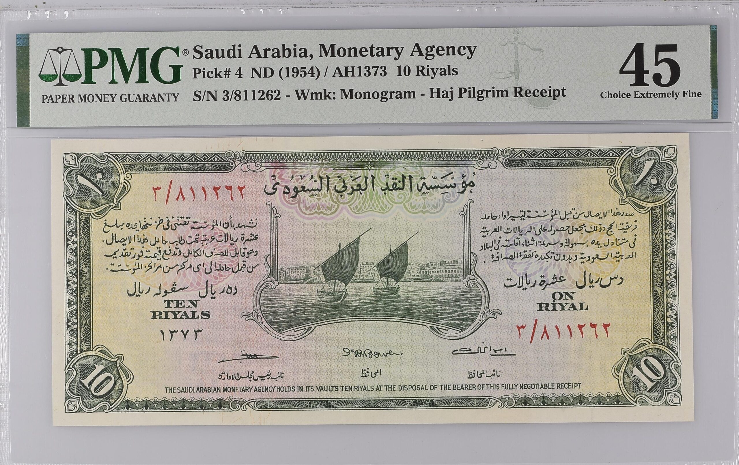 Saudi Arabia, Monetary Agency, 10 Riyals (1954) / AH1373