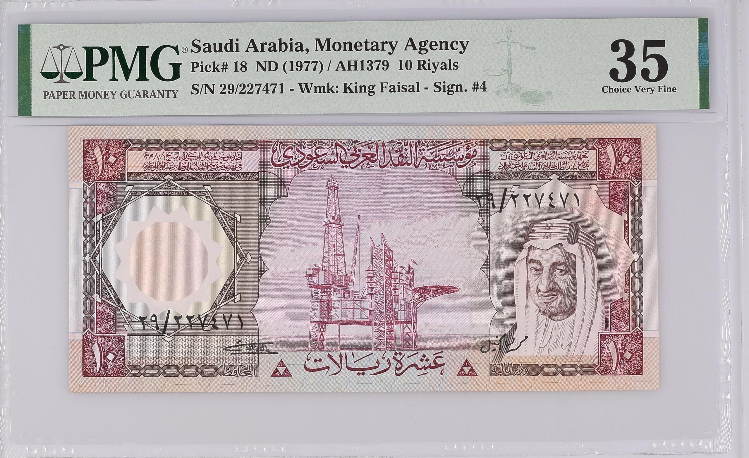 Note Description: Saudi Arabia, Monetary Agency, 10 Riyals ND (1977) / AH 1379
