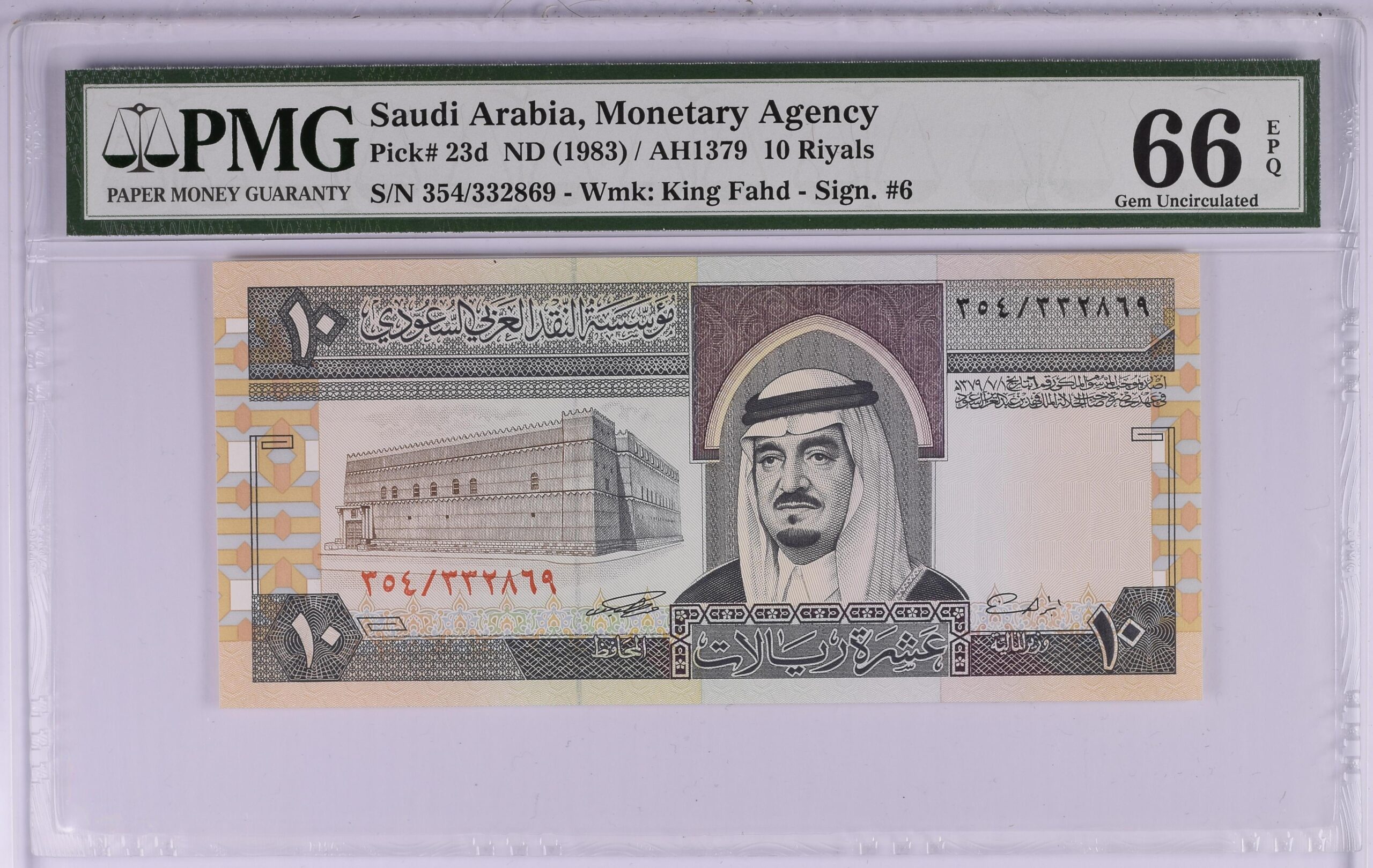 Note Description: Saudi Arabia, Monetary Agency, 10 Riyals ND (1983) / AH1379