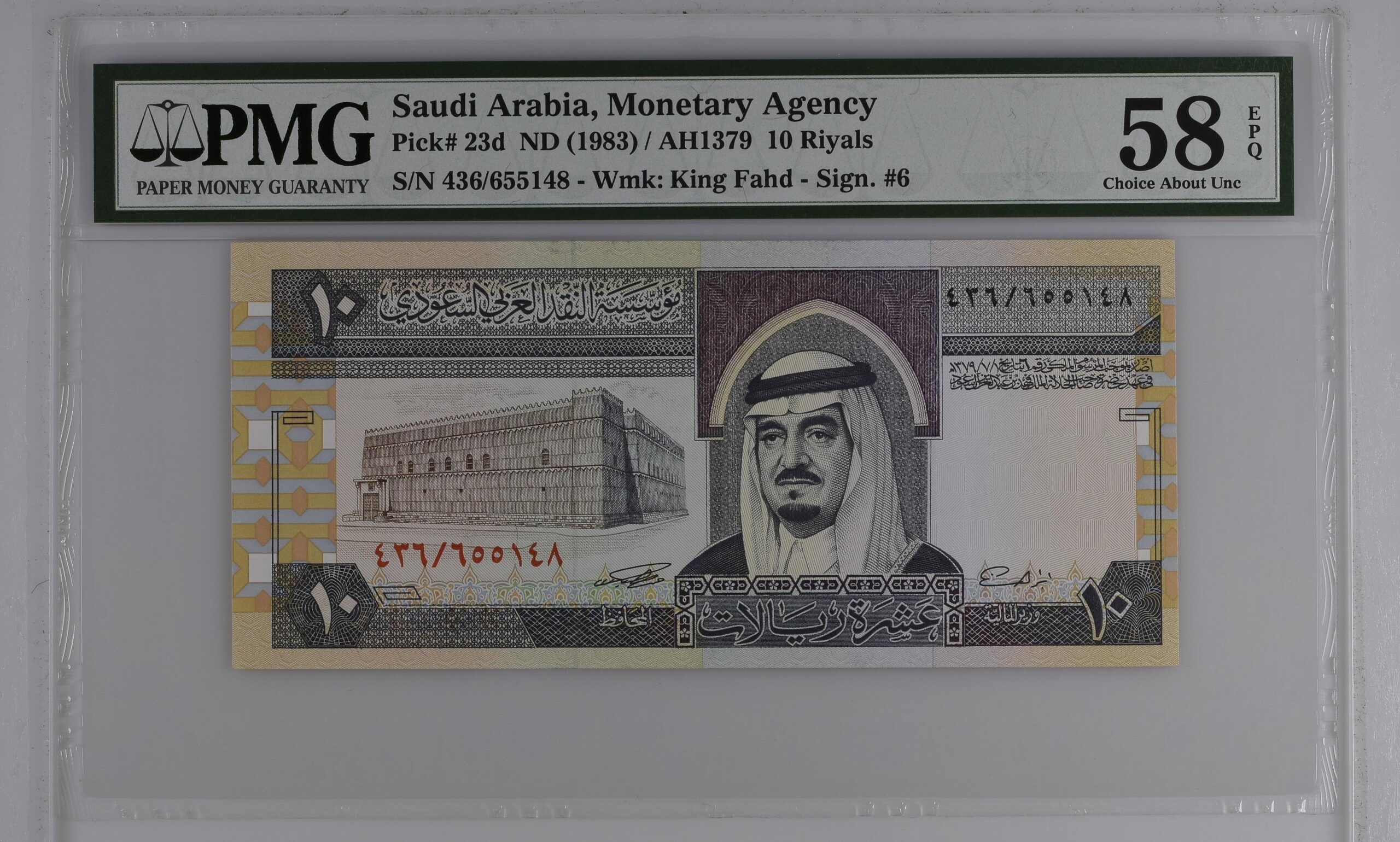 Note Description: Saudi Arabia, Monetary Agency, 10 Riyals ND (1983) / AH1379