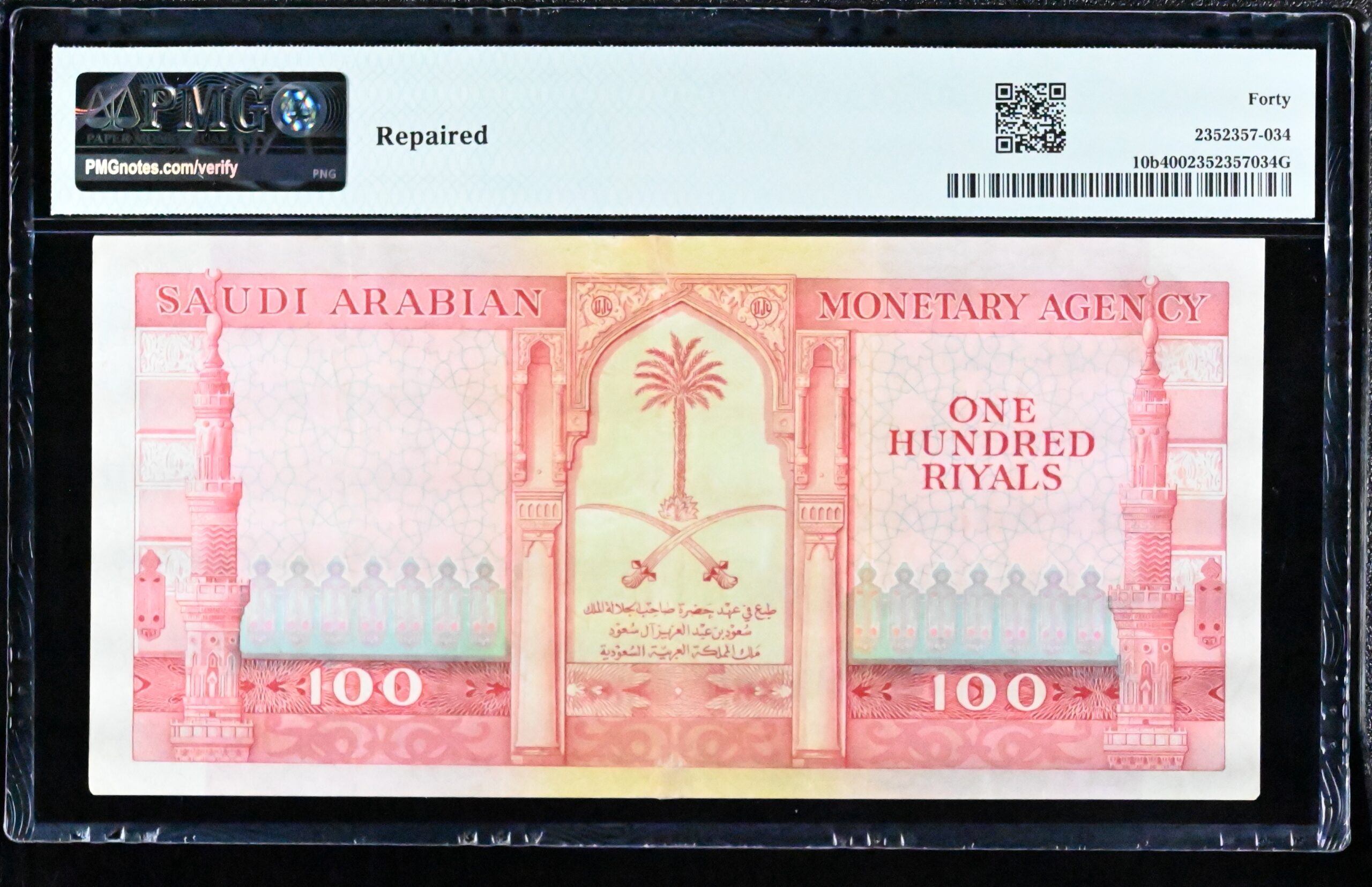 Note Description: Saudi Arabia, Monetary Agency, 100 Riyals ND (1961) / AH1379
