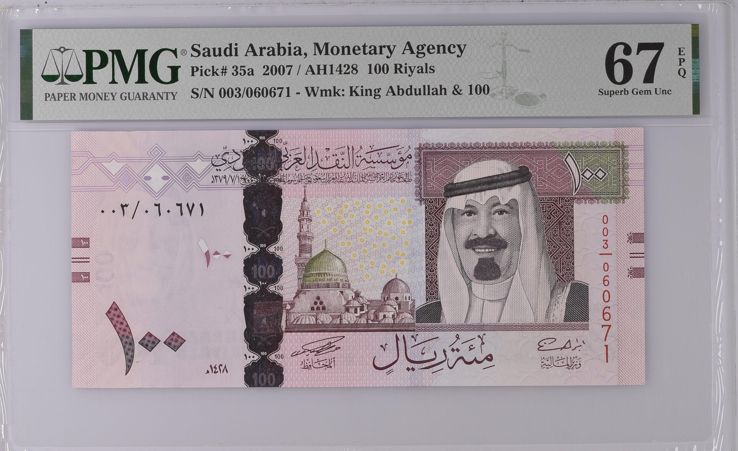- Note Description: Saudi Arabia, Monetary Agency, 100 Riyals 2007 / AH1428