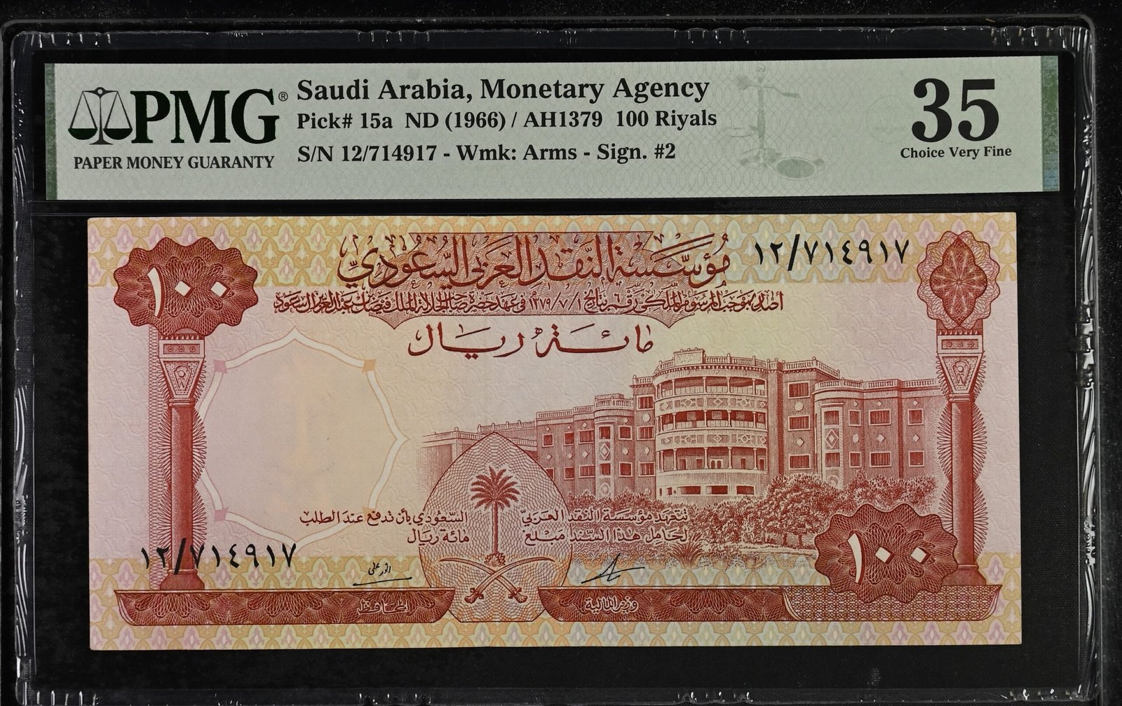 Note Description: Saudi Arabia, Monetary Agency, 100 Riyals ND (1966) / AH1379